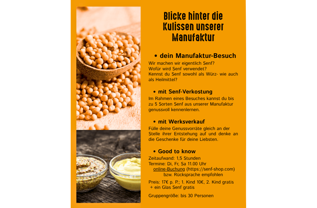 Buche hier deinen Senf-Platz: Manufaktur-Besuch